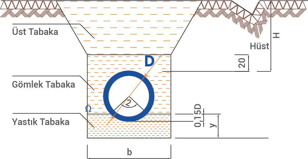 Hüst: Boru üst kotu ile zemin arasındaki mesafe (cm),